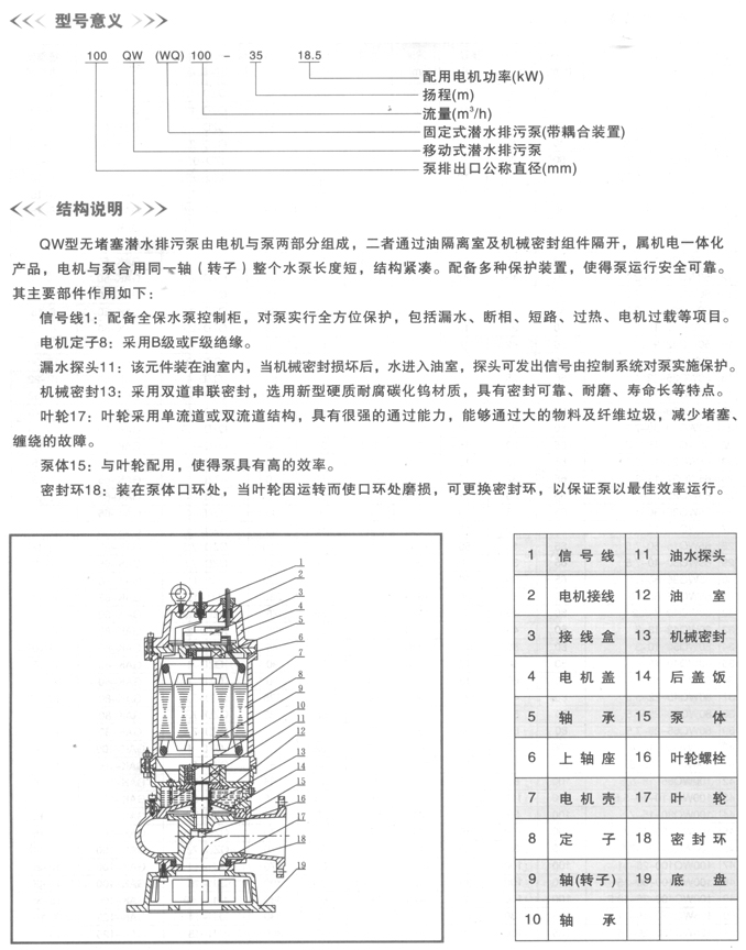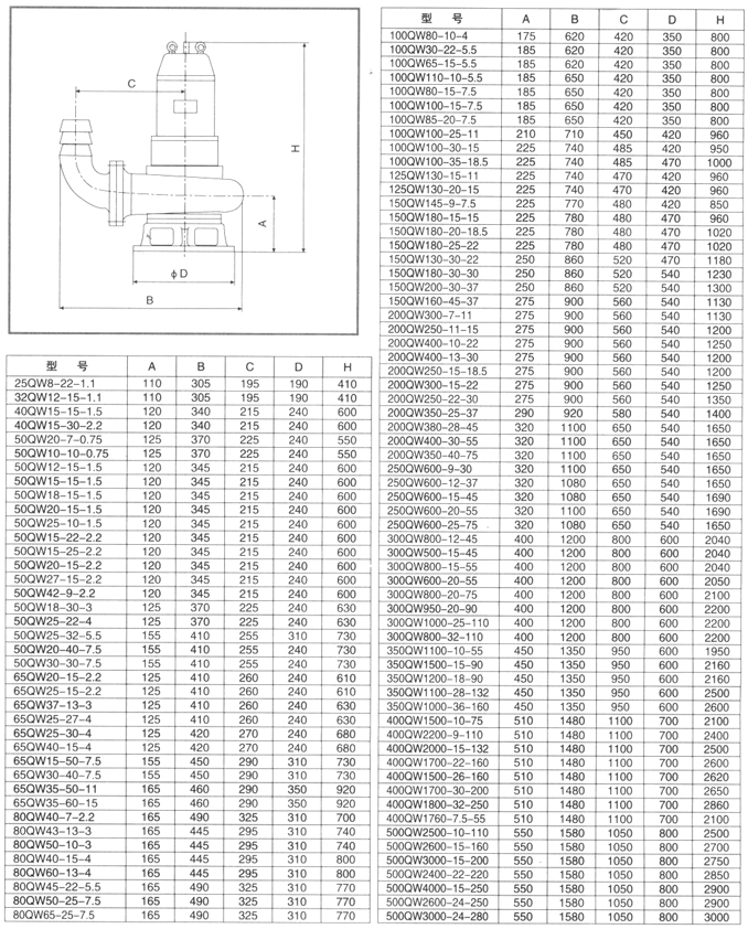 - 排污泵系列 - QW(WQ)无堵塞潜水排污泵